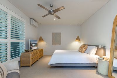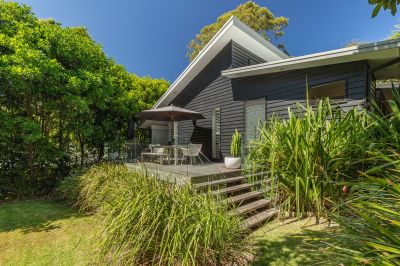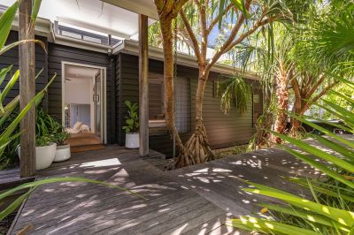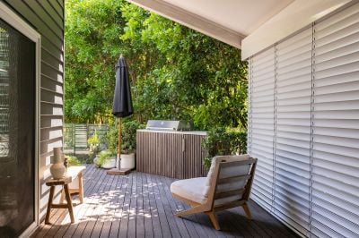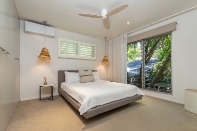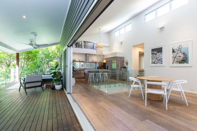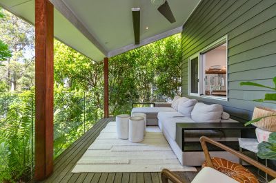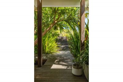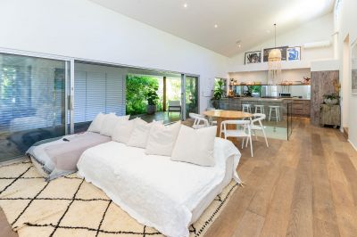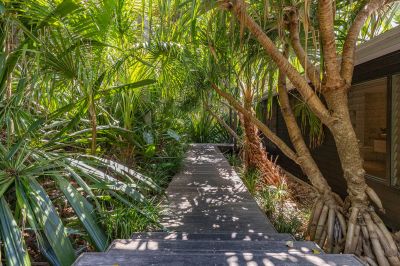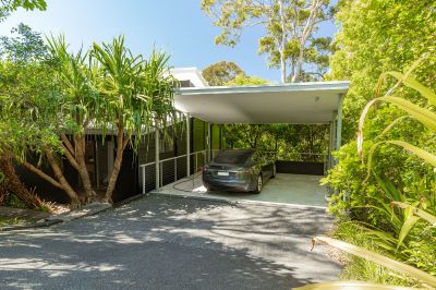 Nestled in a private setting, surrounded by established lush gardens with automated lighting, this residence embodies a harmonious blend of nature and modern living.