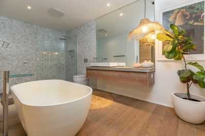 The option to live off the grid via solar panels and Tesla Powerwall 2 battery, offers a satisfying feeling of making a positive impact to our surrounds. There is an abundant water supply sourced from filtered rainwater tanks which service the entire house, plus you can enjoy the convenience of an EV charger for sustainable transportation.