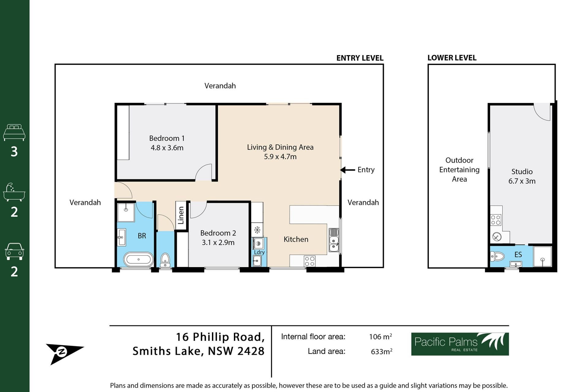 This home offers two generous bedrooms with built-in robes, as well as a separate living/bedroom area downstairs, complete with its own ensuite and private access – ideal for guests or additional privacy.