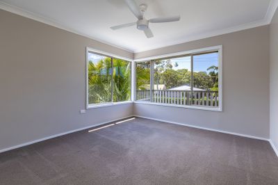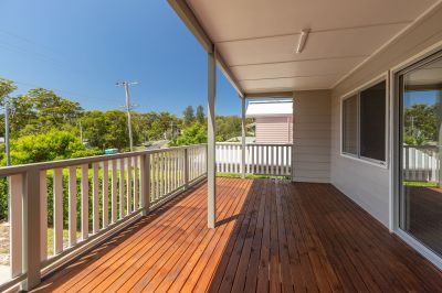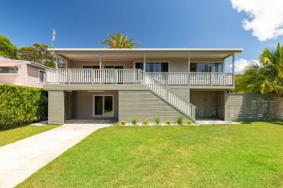 The home has been fully renovated, featuring two spacious upstairs bedrooms with built-in robes, a brand-new kitchen, and a brand-new bathroom, all ready for you to move in and enjoy. The elevated position of the home on one of Smiths Lake's most desirable streets provides ample sunshine and tranquility. Downstairs, you'll find an additional two bedrooms, as well as another shower, toilet, and the laundry.