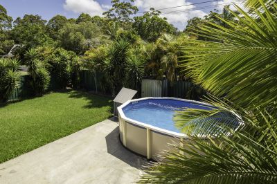 Set within a private, hedged sanctuary, the home is perfect for entertaining or unwinding with its above-ground swimming pool and ample outdoor spaces.