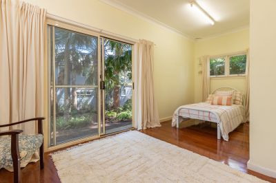 This fully serviced corner block is level with two streetfrontages. The private bush garden includes black butts, angophora, cabbage tree palms and banksias, as well as an open lawn area for children to play.