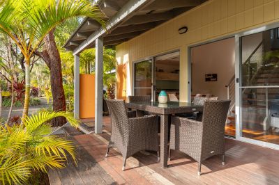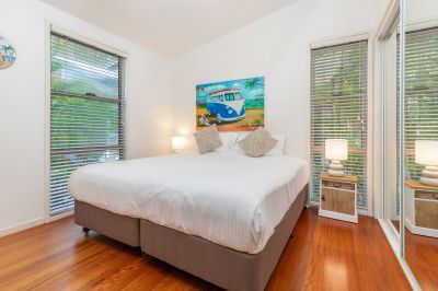 Located within Moby's Resort, just a 5 minutes flat walk to Boomerang Beach, this well-maintained north facing 3-bedroom, 2-bathroom villa offers an ideal lock-and-leave holiday home. Perfect for hassle-free getaways and fully furnished, it's professionally managed and generates strong holiday rental income. Nestled within lush gardens with loads of tropical palms and native plants, this wonderful villa provides a serene and restful atmosphere.