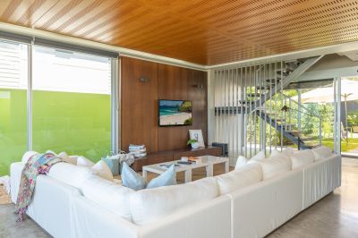 At its heart, a spectacular 11m lap pool defines the home, linking two distinct pavilions by a covered walkway and creating a private resort-like sanctuary.