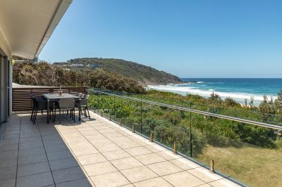 Perfectly positioned on the prestigious Newman Avenue and fronting directly onto the crystal-blue waters of Blueys Beach, this exceptional property presents an incredibly rare beachfront opportunity. Comprising two modern, 3-bedroom holiday apartments plus a separate self-contained studio above the double garage, it offers unparalleled versatility for lifestyle, income, or multi-generational living.