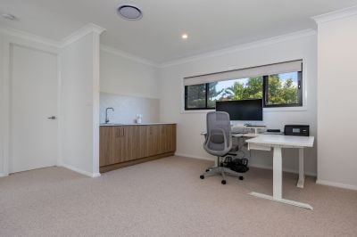 Upstairs, the home features three additional bedrooms, including a master suite with a Juliet balcony, walk-in wardrobe, and a stylish modern ensuite with a feature bath. An additional bathroom also services the additional two bedrooms. A generous second living area provides versatility for families or guests and could potentially be configured as a self-contained space with a separate entry if desired.