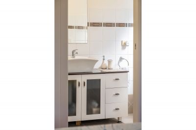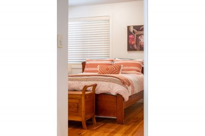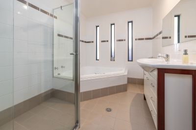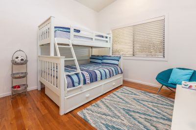 Accommodation is thoughtfully arranged and well-proportioned. The master bedroom is privately positioned and features a walk-in robe, ensuite, ceiling fan, and direct access to the deck, creating a peaceful retreat. Two additional bedrooms are generous in size, both with built-in wardrobes and easy access to the main bathroom. A well-appointed family bathroom includes a separate shower and a luxurious spa bath, while an additional powder room enhances everyday practicality for guests and holiday living.